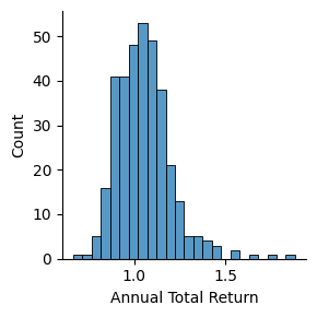 annual_summary_2025.head() #This is going to be a very nice, clean DataFrame to work with| Symbol | first_close | last_close | Annual Total Return | |